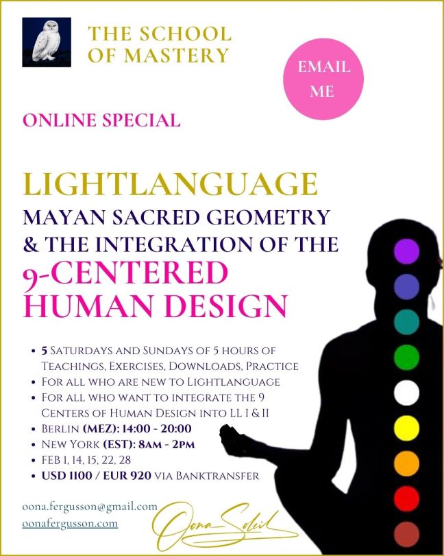 Founded by Oona Soleil, THE SCHOOL OF MASTERY teaches extraordinary courses that have a most fundamental and profound impact on your life. You will learn to use your innate abilities of mind, heart, and body to be powerful and sovereign. You will rid yourself of false and inferior concepts and become the one you were always meant to be. You can take the courses in any order as they all address different aspects of life. Together they weave a carpet of strength and beauty.